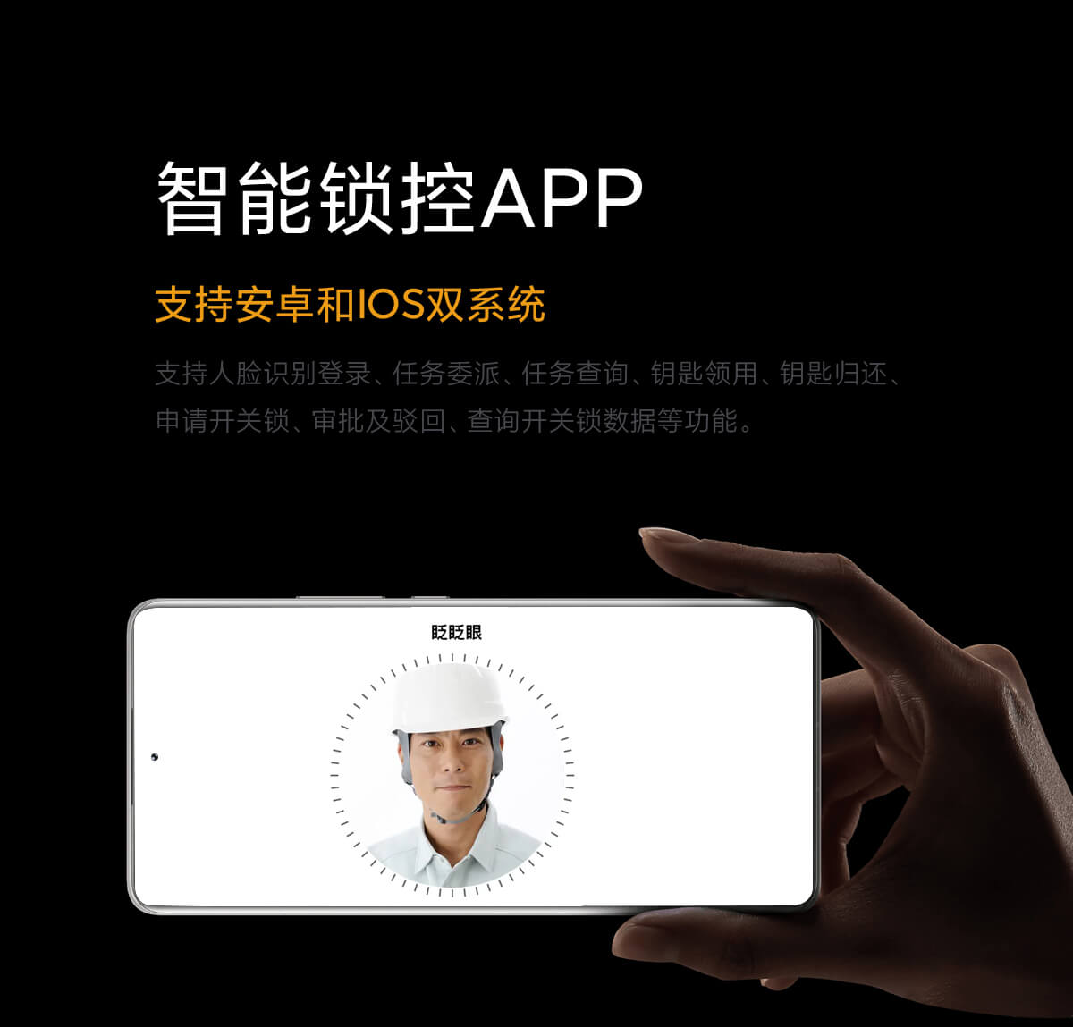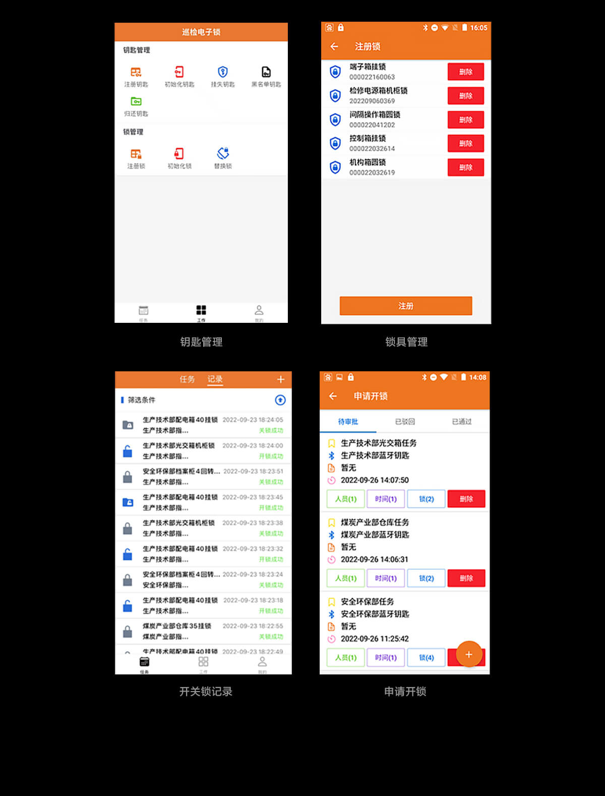 支持人脸识别登录、任务委派、任务查询、钥匙领用、钥匙归还、 申请开关锁、审批及驳回、查询开关锁数据等功能。