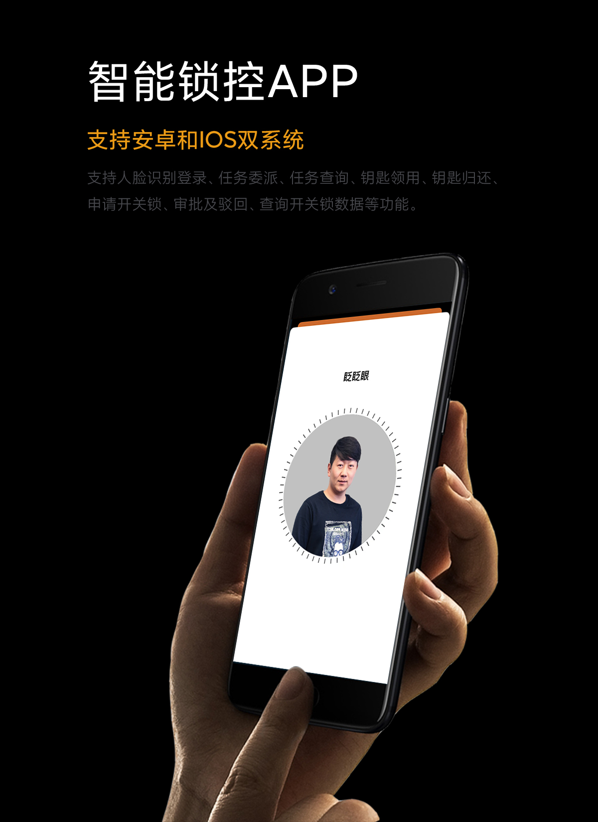 支持人脸识别登录、任务委派、任务查询、钥匙领用、钥匙归还、 申请开关锁、审批及驳回、查询开关锁数据等功能。