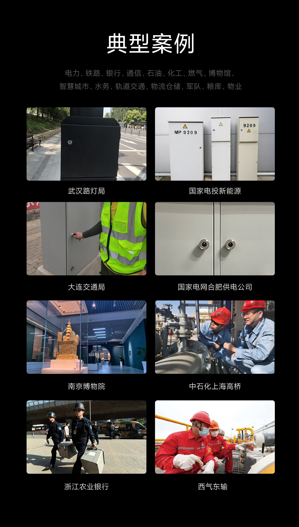 电力、铁路、银行、通信、石油、化工、燃气、博物馆、 智慧城市、水务、轨道交通、物流仓储、军队、粮库、物业
