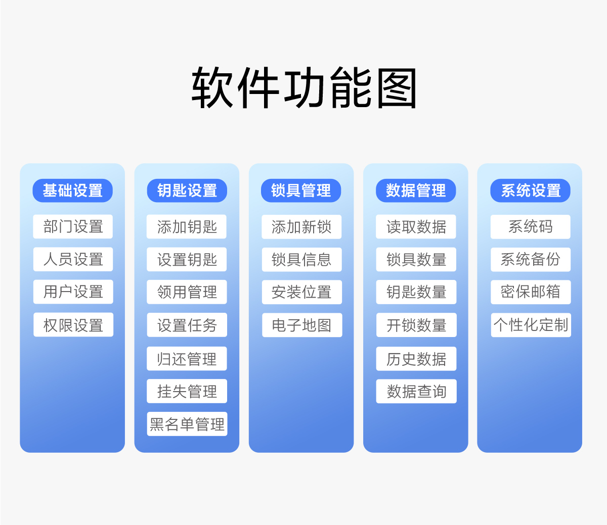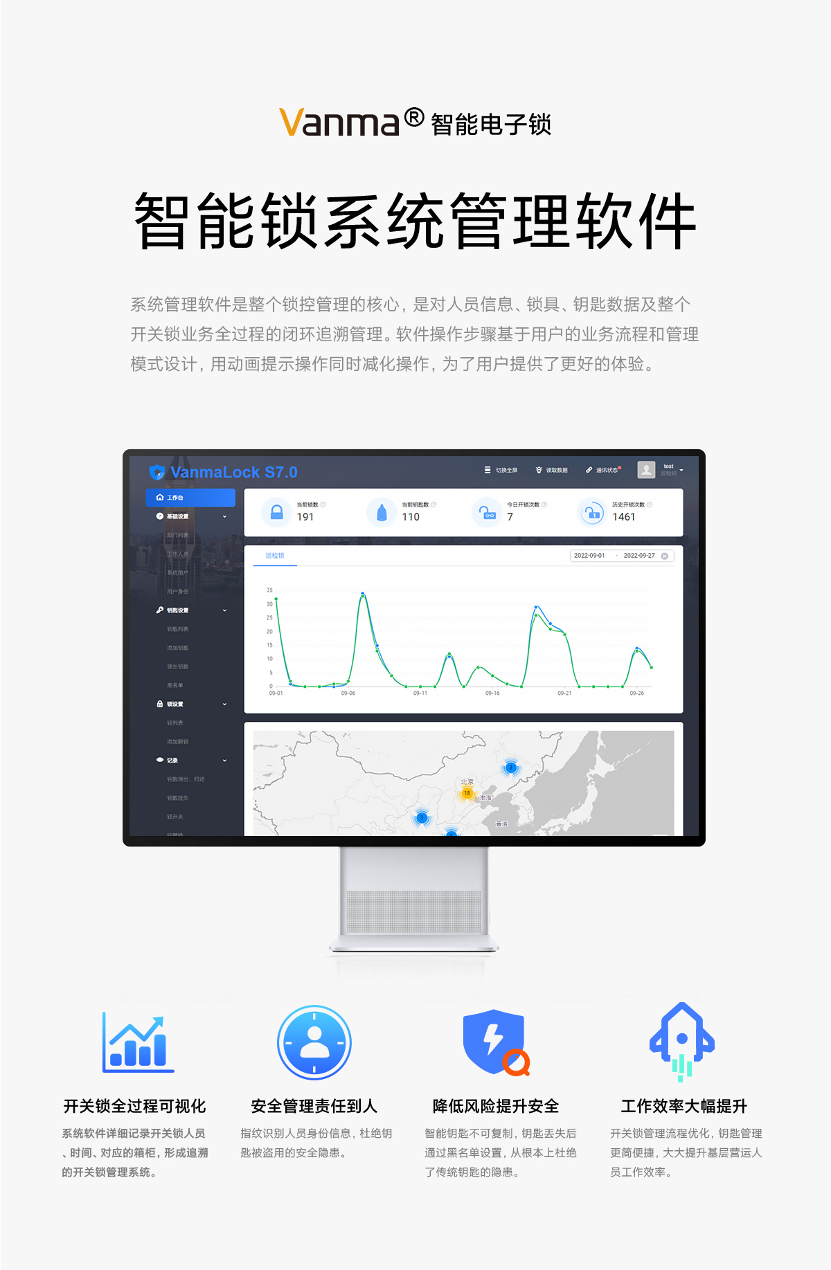 系统管理软件是整个锁控管理的核心,是对人员信息、锁具、钥匙数据及整个开关锁业务全过程的闭环追溯管理。软件操作步骤基于用户的业务流程和管理模式设计,用动画提示操作同时简化操作,为用户提供了更好的体验。