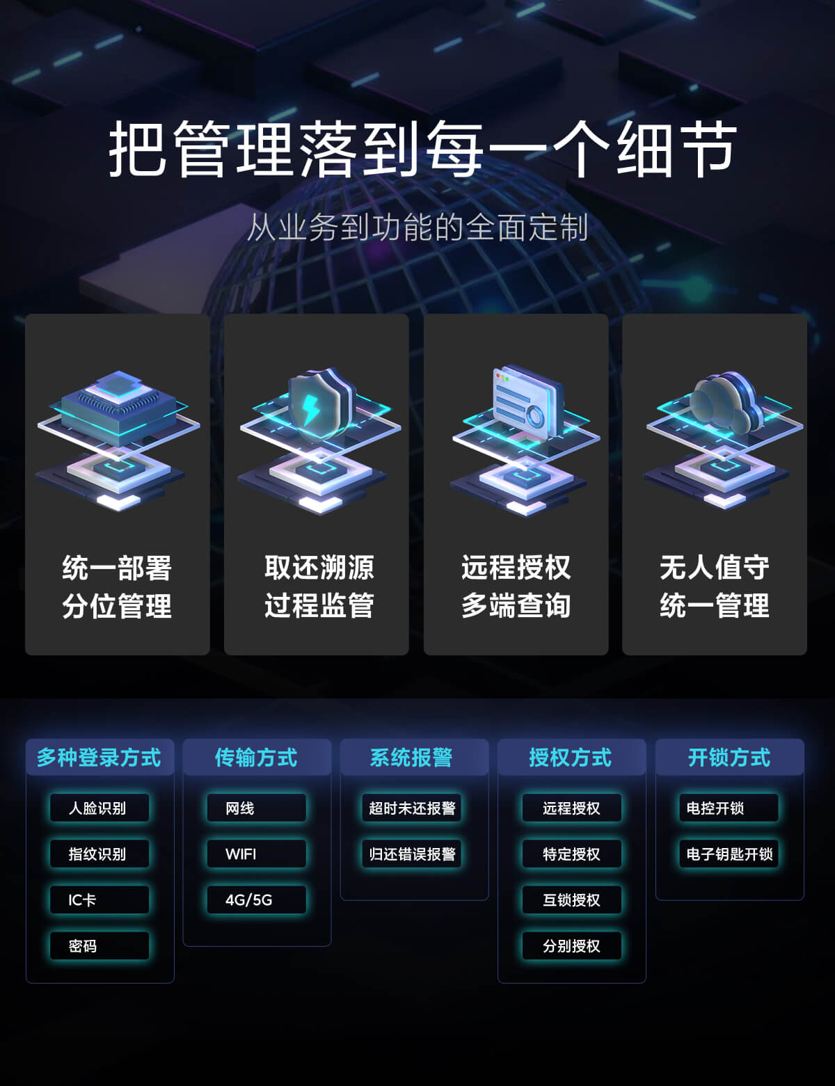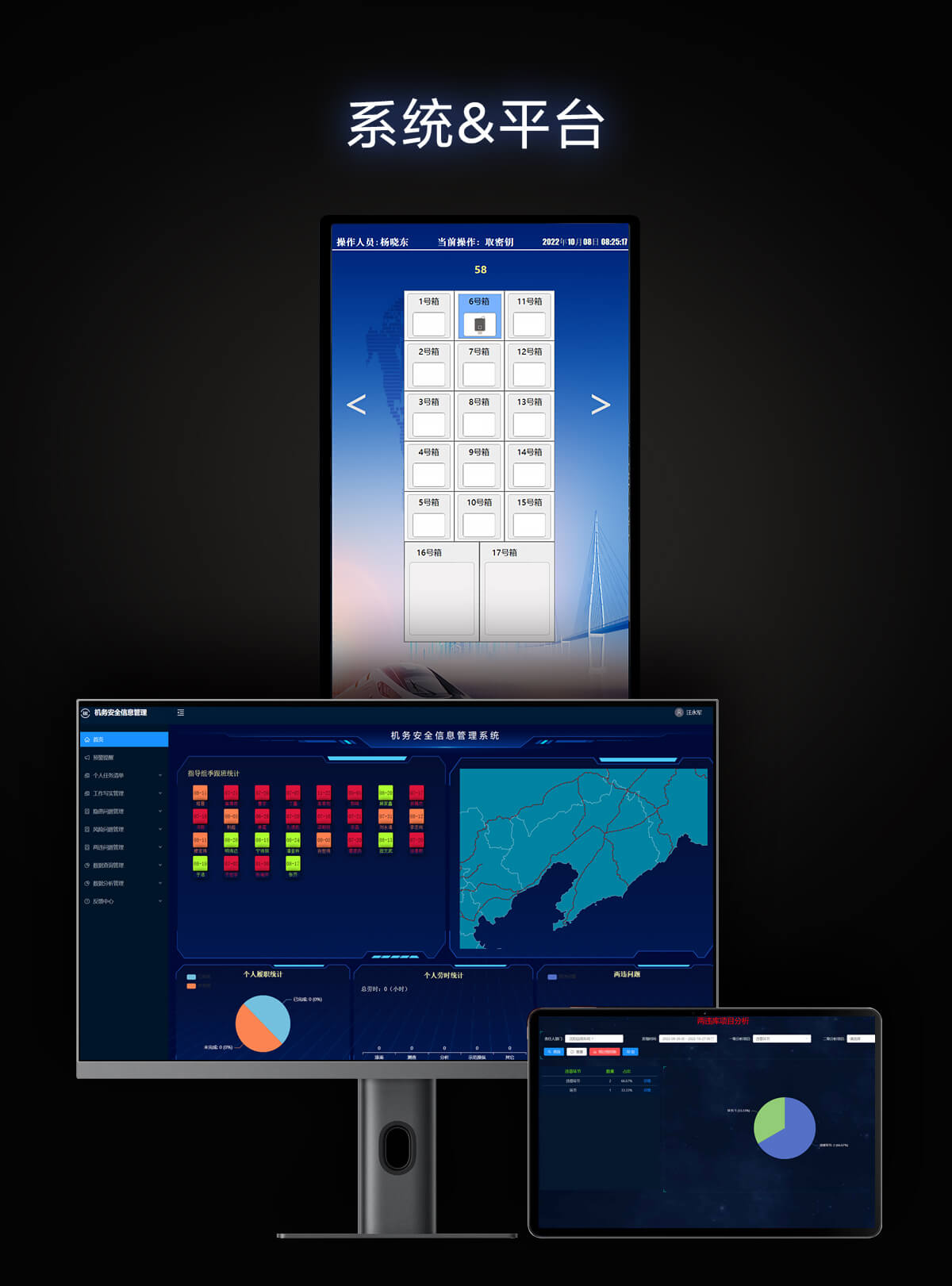 通过人脸、身份证、密码验证登录系统,对电子钥匙的领出/归还管理、开关锁数据采集与上传、钥匙充电,还可以通过系统对钥匙设置工作任务,真正实现了无人值守的钥匙管理系统。