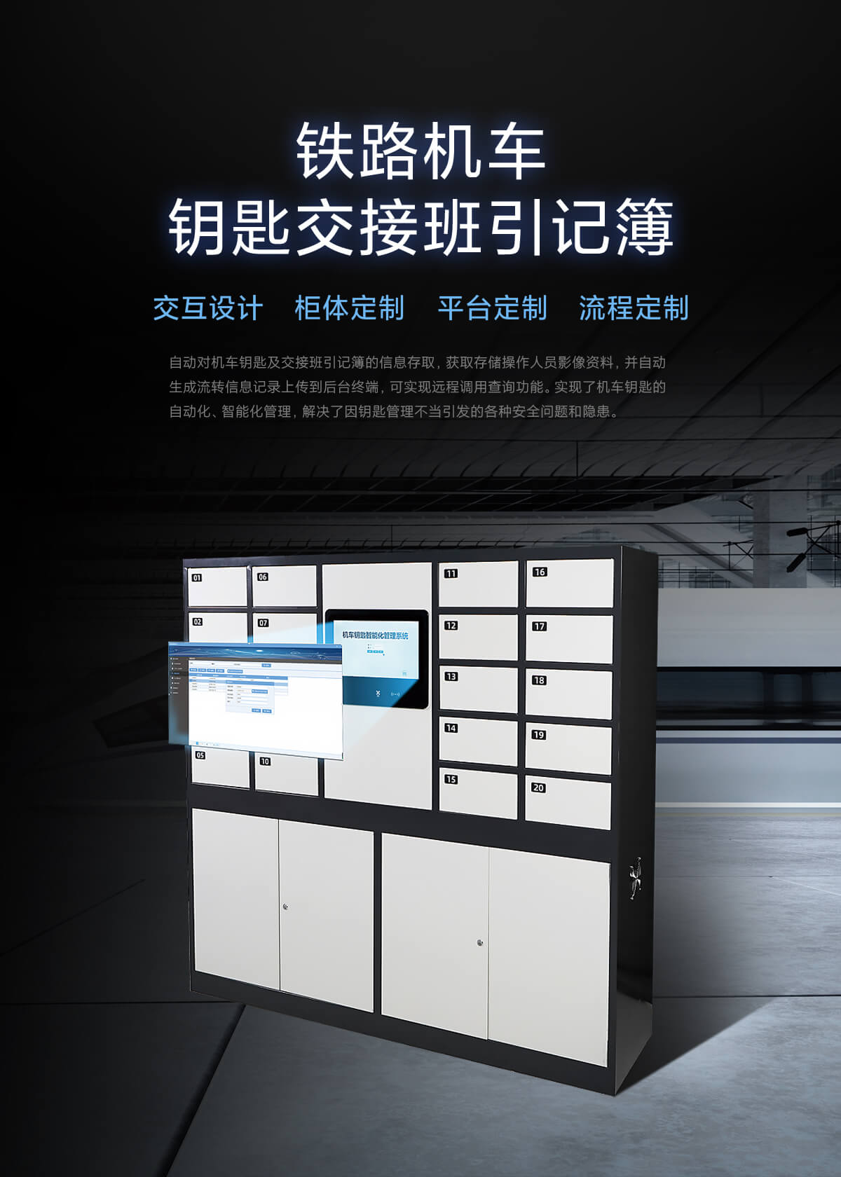 自动对机车钥匙及交接班引记簿的信息存取,获取存储操作人员影像资料,并自动生成流转信息记录上传到后台终端,可实现远程调用查询功能。实现了机车钥匙的自动化、智能化管理,解决了因钥匙管理不当引发的各种安全问题和隐患。