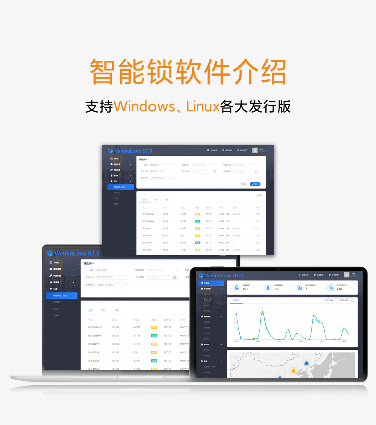 申请开关锁、审批及驳回、查询开关锁数据等功能。