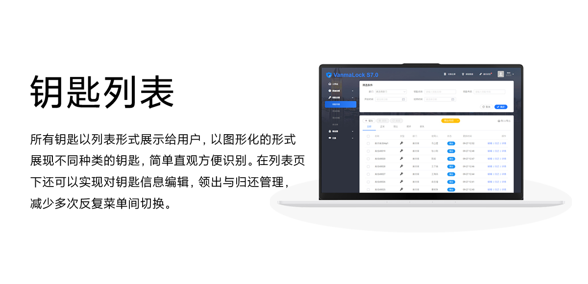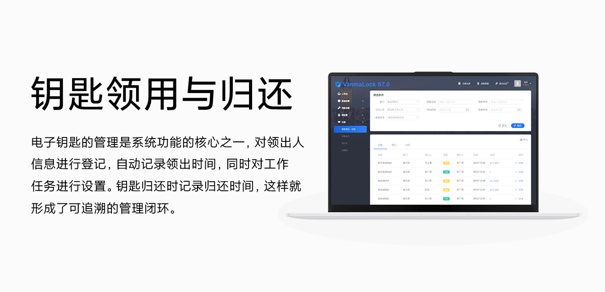 支持人脸识别登录、任务委派、任务查询、钥匙领用、钥匙归还、
